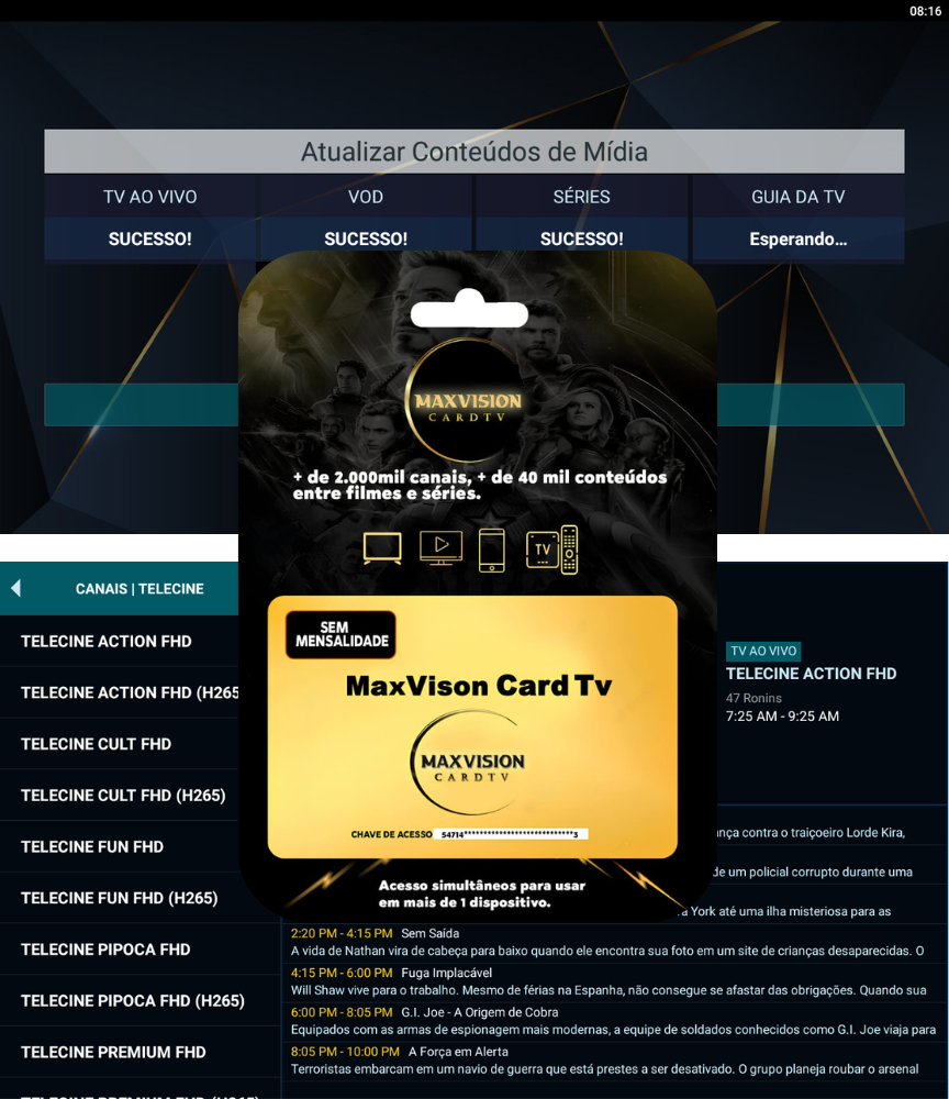GoldCard vai com o acesso que pega todos os Canais sem mensalidade.